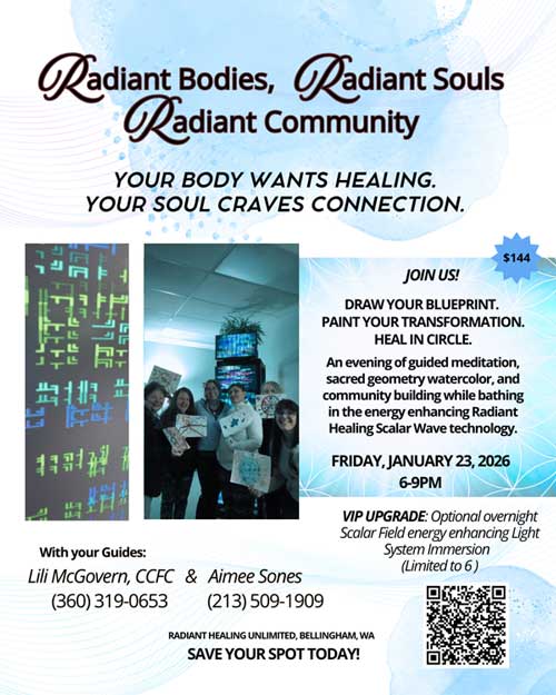 An evening of guided meditation, sacred geometry watercolor, and community building while bathing in the energy enhancing Light System.